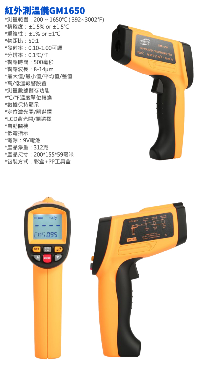 GM1650 紅外線溫度計 200 ~ 1650度 紅外線測溫槍 溫度槍 雷射測溫槍 20814